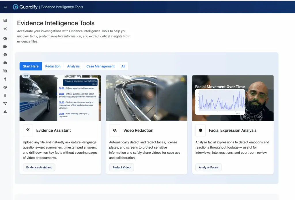 Guardify CEO Ben Jackson stated “When every second counts, Evidence Assistant helps law enforcement review, report, and respond with precision.”