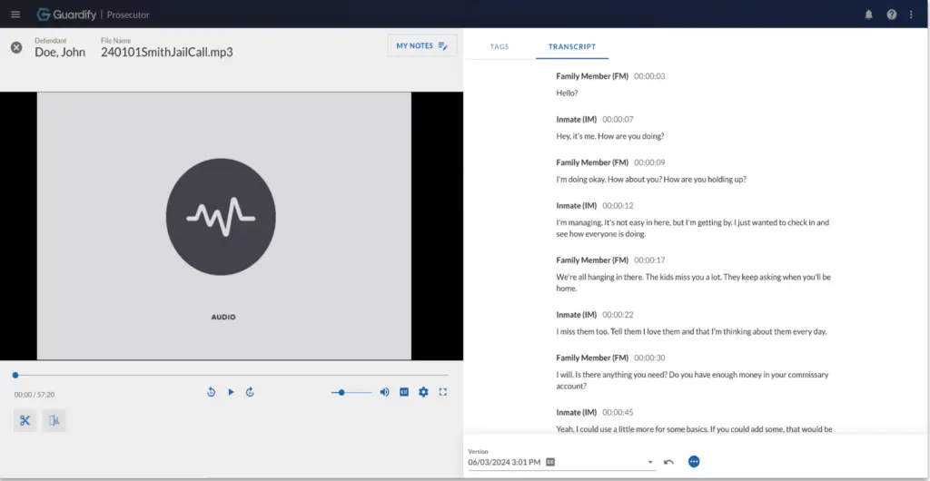 Jail Call Transcription AI is fine-tuned to optimize for situation specific transcription to further enhance the accuracy of the transcript and speaker identification for these important calls.