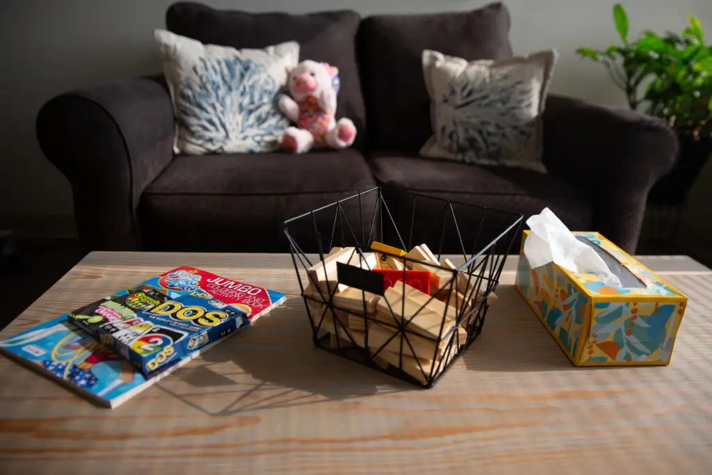 Seating: Having kid-sized chairs, sofas, or pillows allows the child to be at eye-level with the interviewer and sit in a relaxed position that doesn’t feel confrontational.